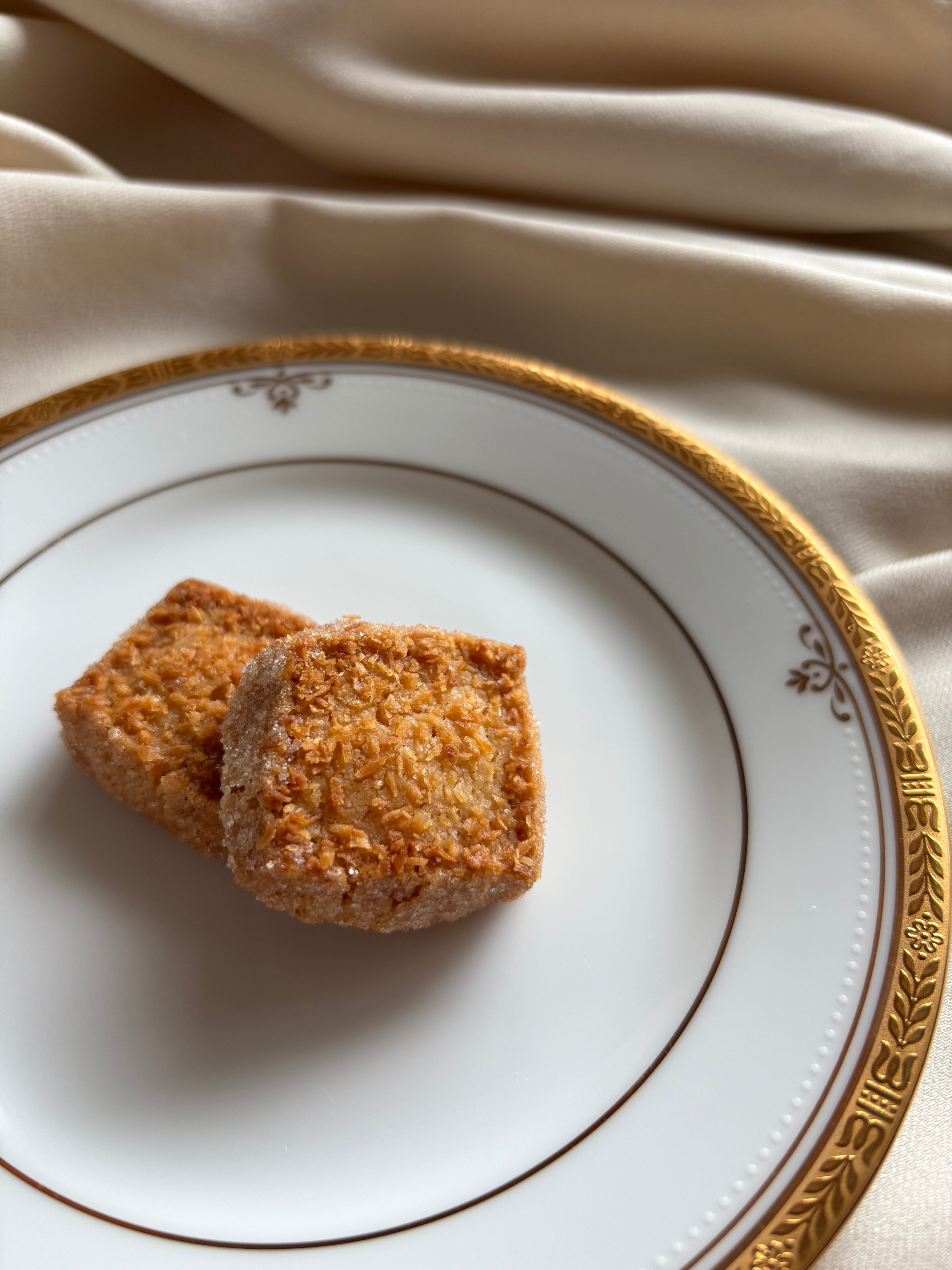 小麦粉、バター、砂糖、ココナッツ、卵、バニラオイル、、塩、ベーキングパウダー